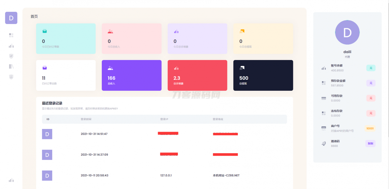 系统采用FastAdmin框架独立全新开发,安全稳定,系统支持代理、商户、码商等业务逻辑。