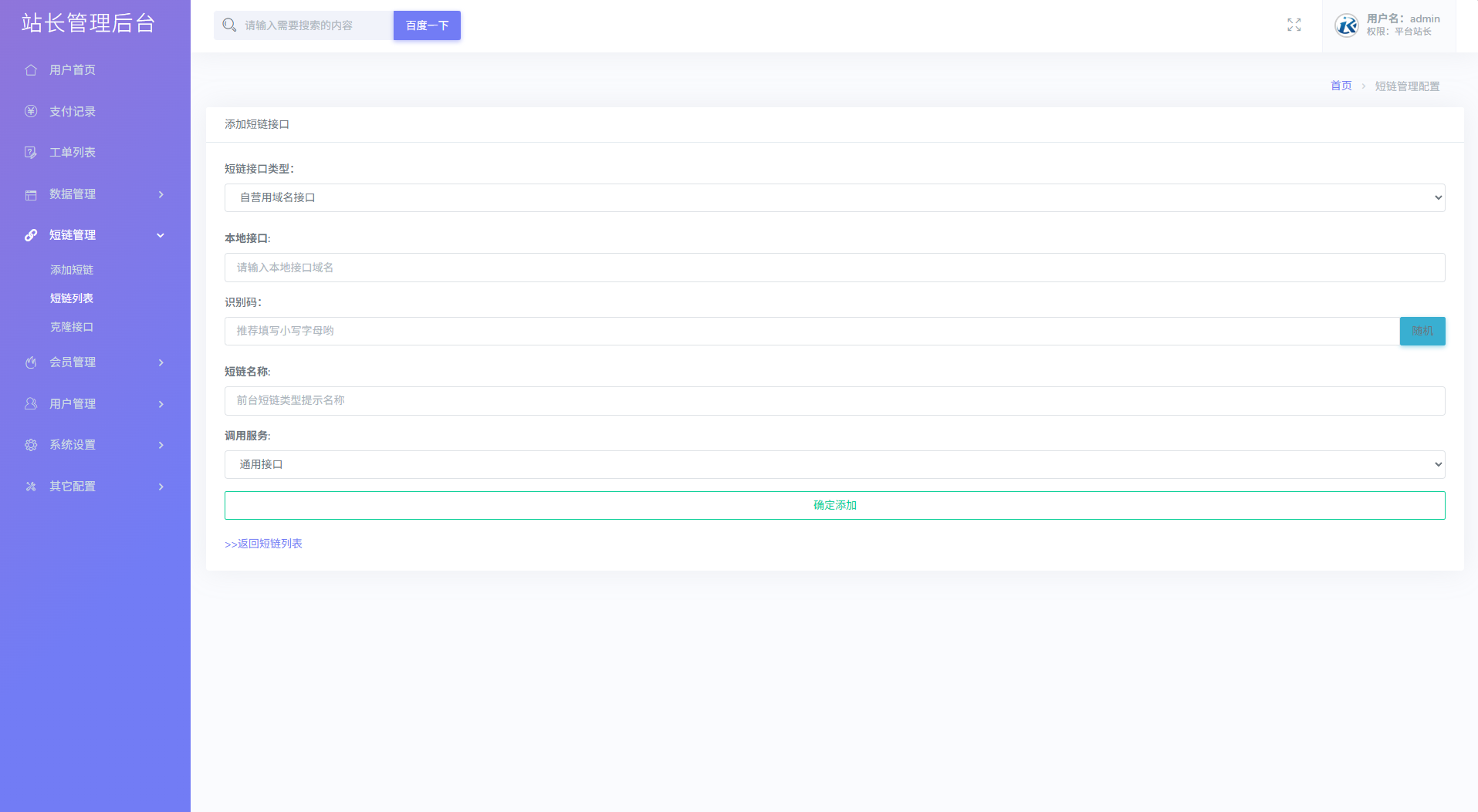 防红接口可用自己的域名做接口,也可以同系统对接,接口域名可设置普通用户或会员才可使用