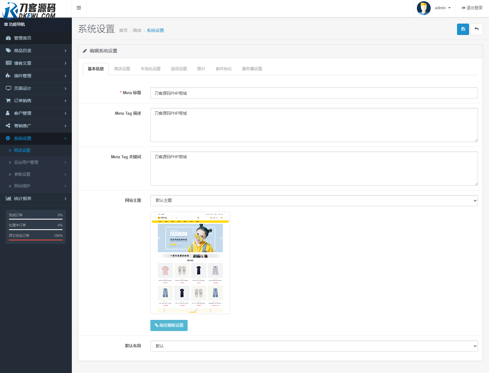 后台登录地址:http://你的域名/admin